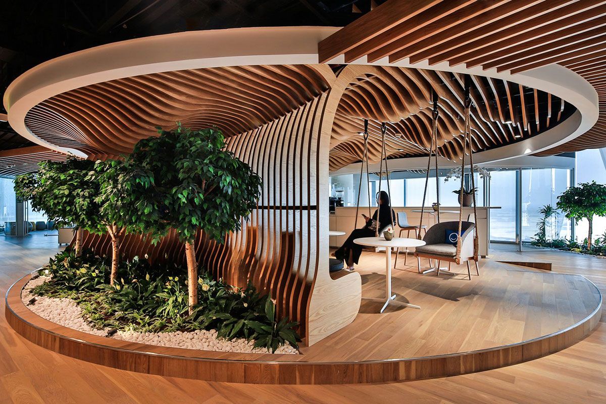 바이오필릭 디자인의 핵심 원리는 자연을 '모방'하는 데 있다. 첫째, 직접적인 자연 요소 – 식물, 물, 빛 – 를 들이는 것. 둘째, 자연 패턴과 형태를 반영한 디자인. 셋째, 공간과 자연의 연결감을 강조하는 레이아웃. 예를 들어, 실내에 그린 월(수직 정원)을 설치하면 공기 질이 개선될 뿐 아니라, 시각적 휴식을 준다. 천연 우드나 석재 소재를 사용하면 촉감이 자연의 거칠음과 부드러움을 재현한다. 곡선 형태의 가구는 산맥이나 강의 흐름을 닮아 공간에 유기성을 더한다.